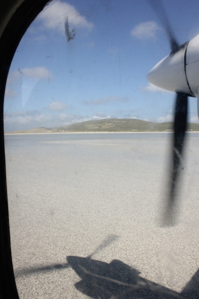 Thankfully, the winds were kind and we had a very nice flight…well as nice as you can get in a plane that carries about 12 people and doesn’t go over 10,000 feet. But the low altitude enabled me to see almost all of the islands along the way. Breathtaking! Especially when you think about all that the original settlers of these islands had to go through to get here. The McNeills came over on a boat and decided Barra was the place to settle. Even on a clear, sunny day, the seas were not calm. I can’t event imagine coming over on an ancient ship during stormy weather. In Gaelic, the motto of the McNeills is ‘Buaidh no Bas’ which translates to Victory or Death! While there’s no comparison between flying to Barra on a modern air plane and landing on Barra in a boat, I couldn’t help but feel a little like shouting “Buaidh no BAS!” Braveheart-style as we came in for an uncertain landing.
