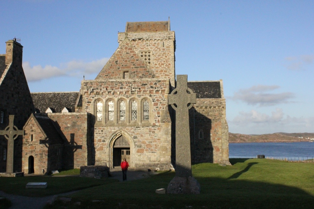 I walked into my hotel and immediately ran into one of my campus ministers from my college days. Small world…especially when you’re a Presbyterian on Iona. After catching up and eating dinner, I headed out to evening worship at Iona Abbey. The cold, damp chapel, didn’t exactly say light and life. I was still a skeptic that this spot, revered by so many, was more than hype. Maybe this whole “thin place” thing sprang up when folks like me, who had traveled 12 hours or more to get there, saw the island’s beauty, and couldn’t help but feel close to God and thank God that they had finally arrived. Maybe, whenever you go into any chapel situated on a beautiful island in the middle of the ocean, you can’t help but feel that it’s sacred. Maybe folks come expecting to see and feel God, and as a result of their seeking and awareness, they do indeed have a spiritual experience. I wasn’t completely convinced of any of those possibilities as I entered the Chapel for worship.