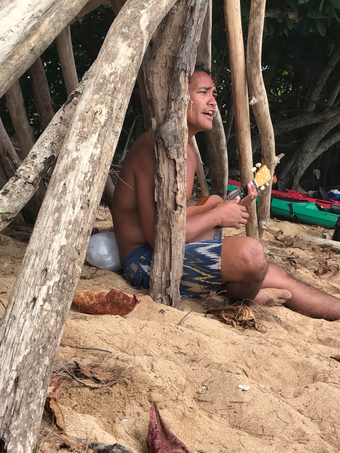 Feasting on the beauty of Hanalei bay as my kayak floated around and landed on shore for more snorkeling. And our guide sat on the beach to “talk story” and sing a few Hawaiian tunes.