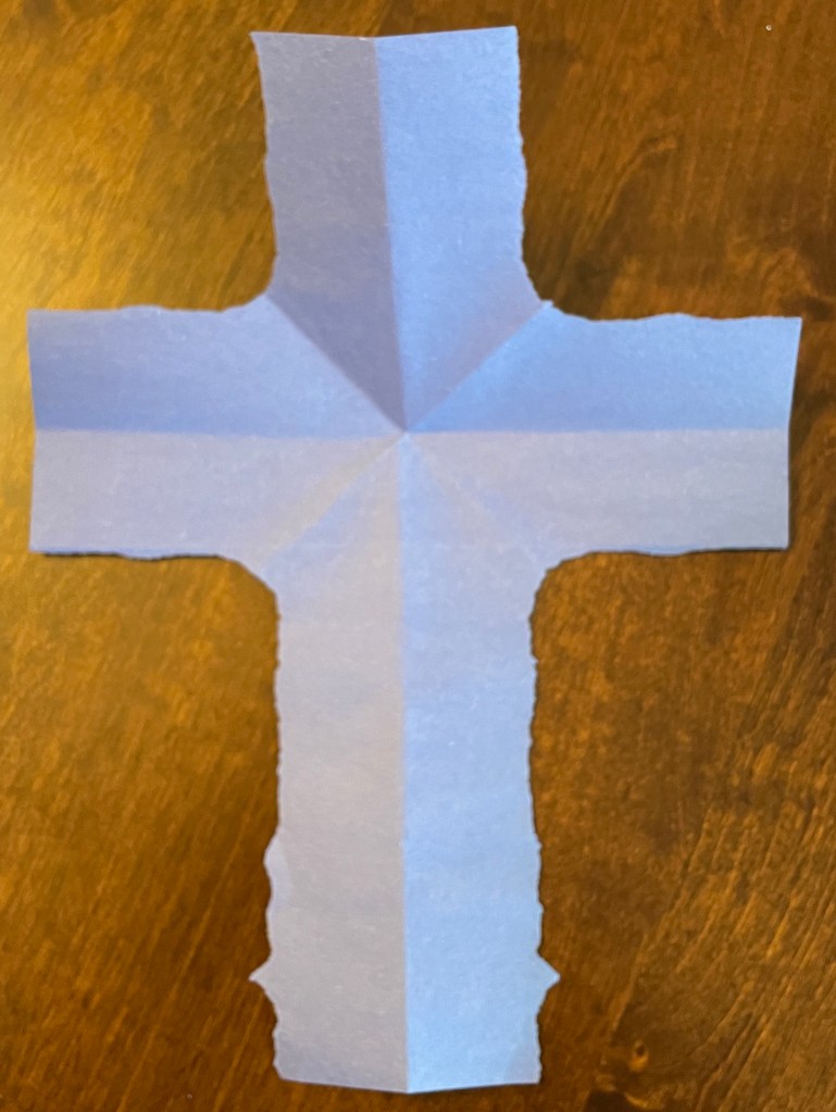 Her name was Beverly. She was around 65 or so and dressed to the nines in a snazzy red and black outfit. She told me about how she had experienced 5 strokes, nearly died, but survived, even though her body isn’t fully cooperating now (thus the wheelchair). She told me about her young life as a drug addict, living on the street, losing everything, then getting back on her feet. She used her construction paper, folding it, turning it, and tearing it to illustrate each chapter in the story of her life, ending with a cross she folded into an upward arrow. It was utterly captivating. She was a beautiful story teller and a gentle spirit. She had the presence and wisdom of someone who’s seen the worst this life has to offer and came out on the other side. She was the kind of seasoned church lady that you couldn’t shock if you tried. She may seem all prim and proper but she’s seen it all. After making it through some major ups and downs, she now feels called to use whatever life she has left to serve God. She never tried to quiz me on scripture, “save” me, or get me to talk about my own faith. She was trying to let her life speak as an example of what it means to trust in and live for God.